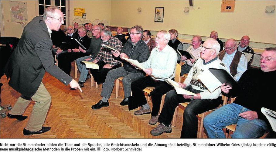 Bis das Publikum aber in diesen musikalischen Hochgenuss kommen wird, ist der Männerchor intensiv dabei, seine Stimmen auszuformen. Dazu hat Vorsitzender Günter Sporenberg keinen geringeren Stimmbildner als Wilhelm Gries von den Limburger Domsingknaben gewinnen können. Schon allein den Chorproben beizuwohnen, war etwas ganz Besonderes – und ließ sogar Laien erkennen, dass die Sänger sich am Ende neu gefunden hatten.